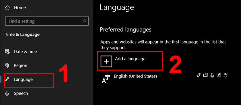 - Nhấp vào Add a language, tìm kiếm Chinese (Simplified hoặc Traditional) và nhấp Install.